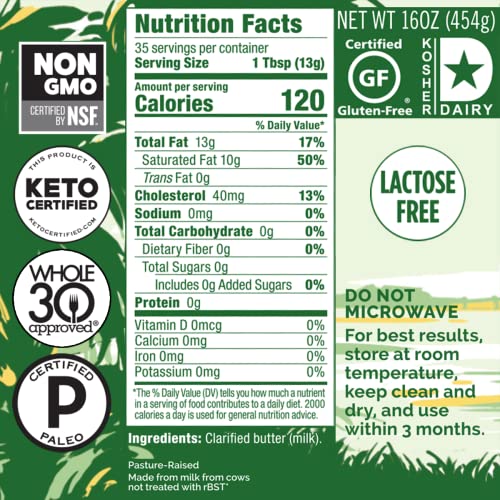 - WE SOURCE THE BEST: Our lactose-free ghee comes from grass-fed, pasture-raised, antibiotic and hormone free New Zealand cows.