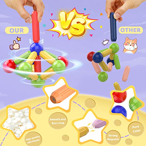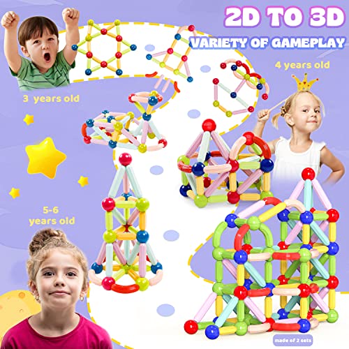 - 【STEM TOYS FOR 3+ YEAR OLD 】Hands-on ability promotes brain development. Let kids build SELF-CONFIDENCE as they explore different shape, whether they succeed or fail. Challenges from 2D to 3D, build as big as desired by adding more magnet stick toys. Magnetic toys are benefit for sensory, montessori, building, preschool education, problem-solving and more.